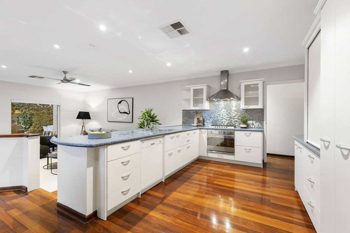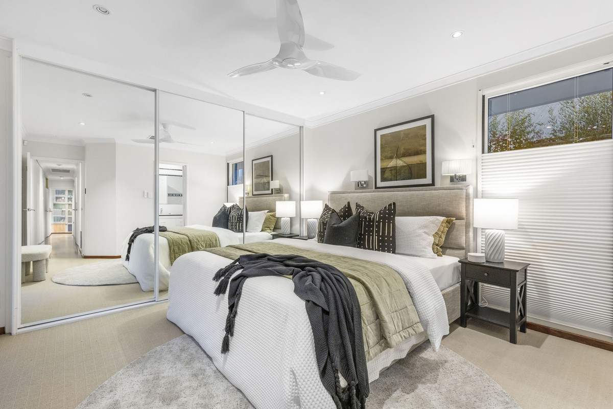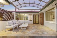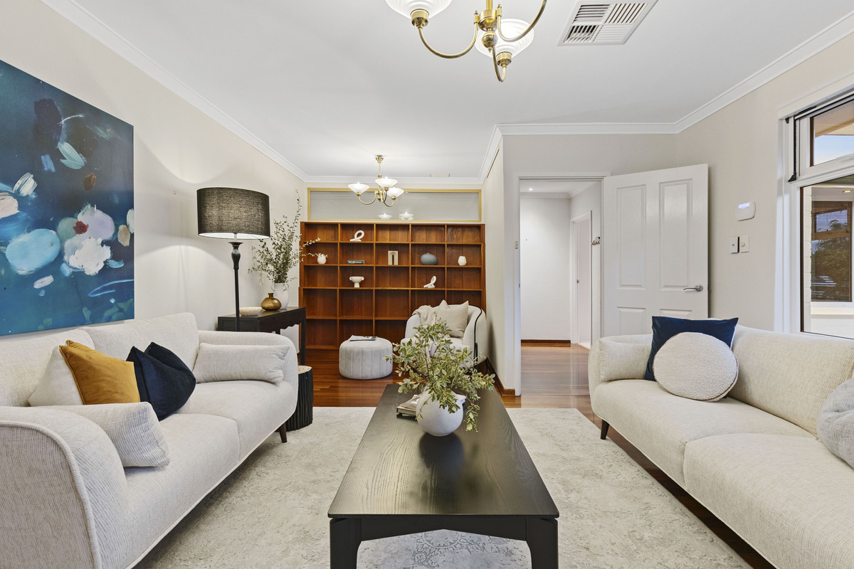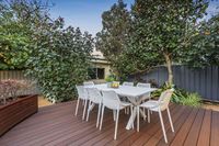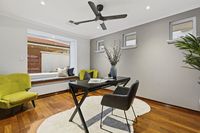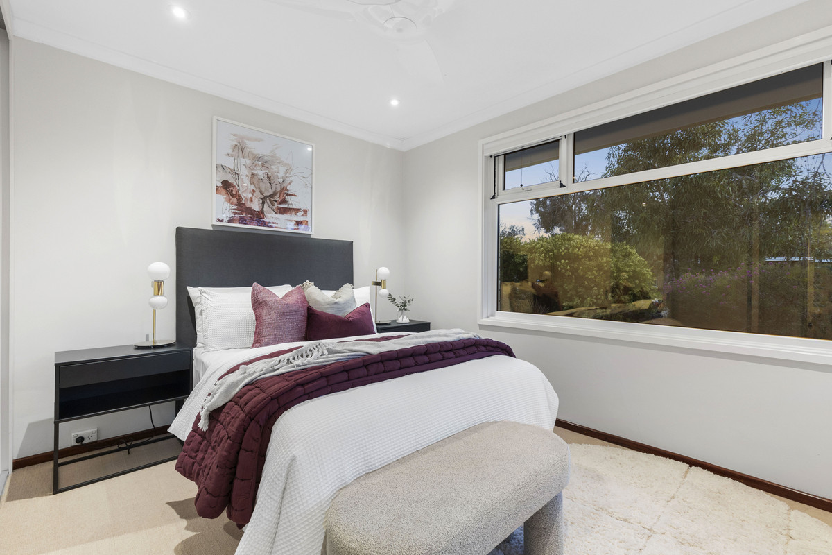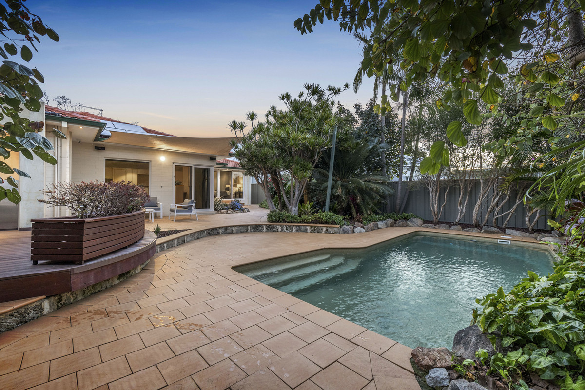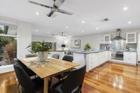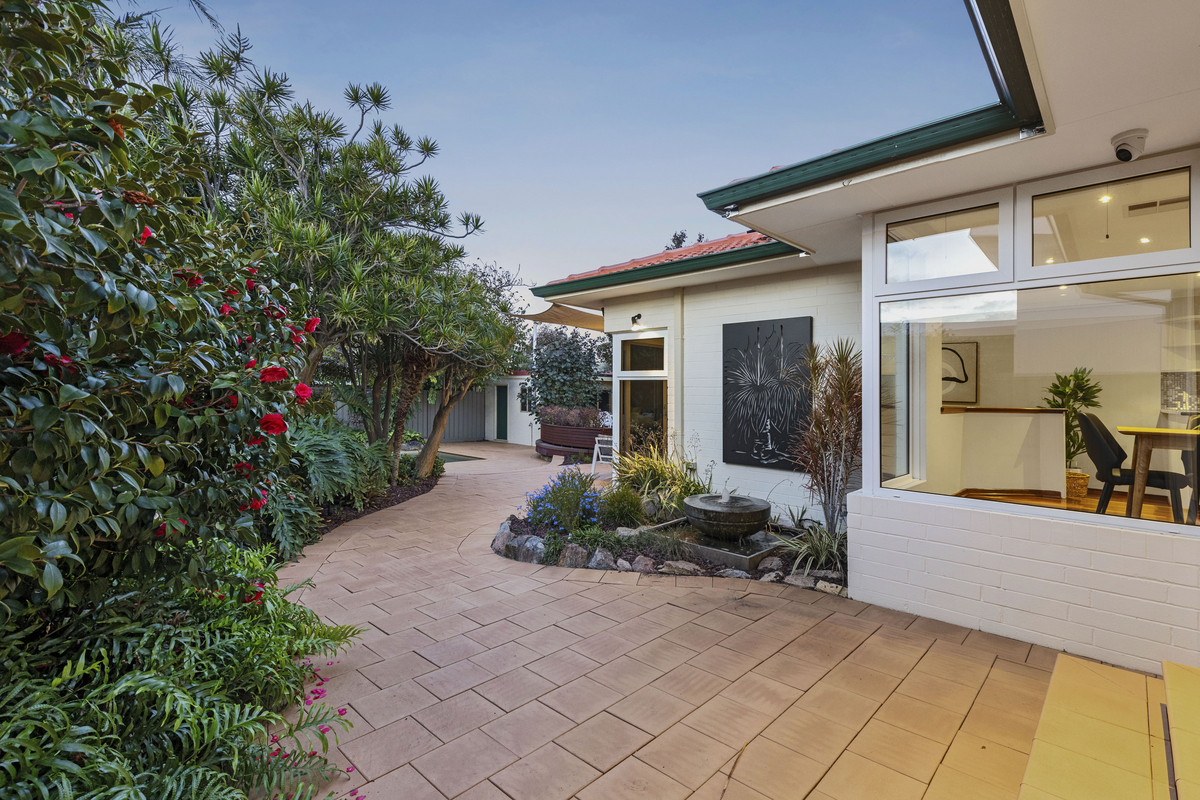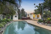 Set amongst landscaped gardens with water features, artistic screens and abundant birdlife, this welcoming home offers large, free-flowing living areas with high ceilings, timber floors an open-plan kitchen and natural light through double glazed windows. Multiple alfresco spaces, including a decked dining terrace with barbecue kitchenette, overlook a lagoon-style, solar-heated saltwater pool, perfect for entertaining or relaxing. The main bedroom enjoys a contemporary ensuite and garden outlook, while family bedrooms are well separated for privacy and share a spacious bathroom with spa. Complete with a study, large freestanding workshop, solar electric system, ducted air-conditioning, Smeg appliances, electric blinds and an integrated gas fireplace, this home blends modern comfort and effortless style.