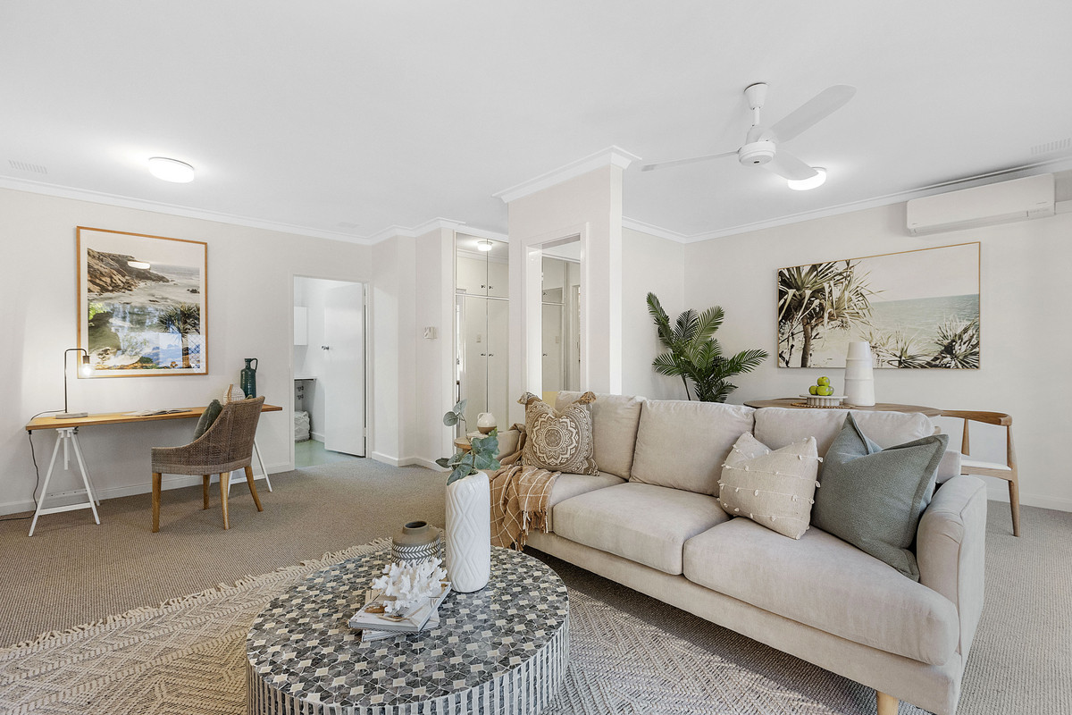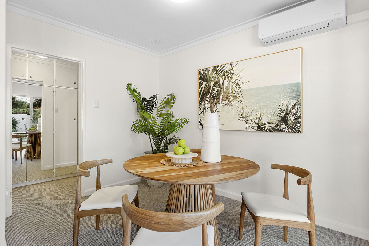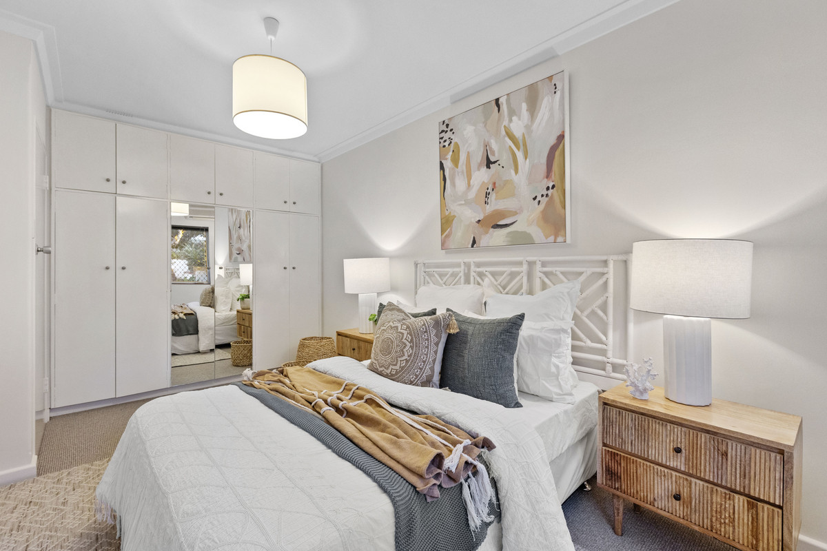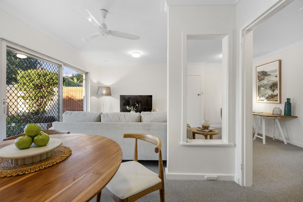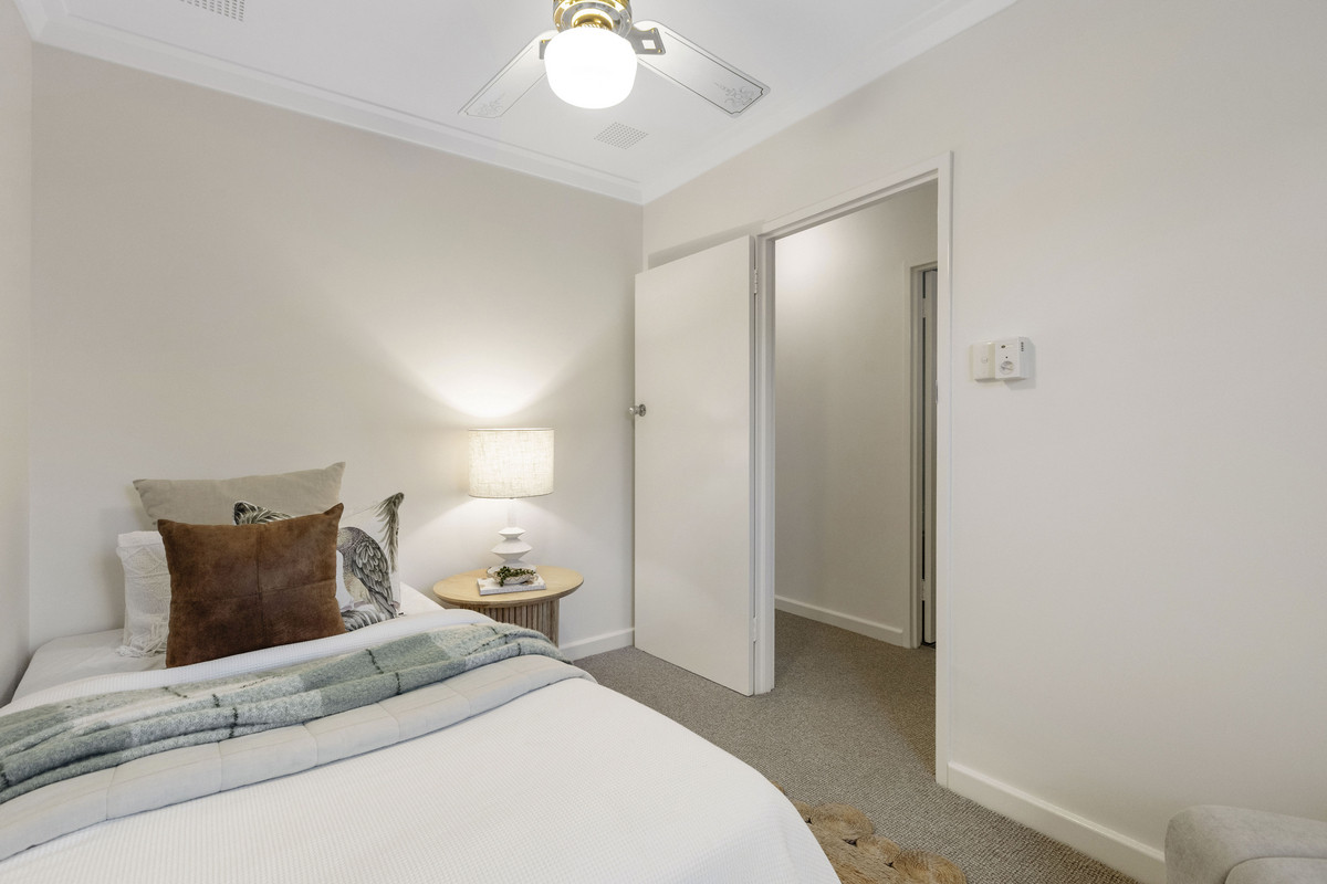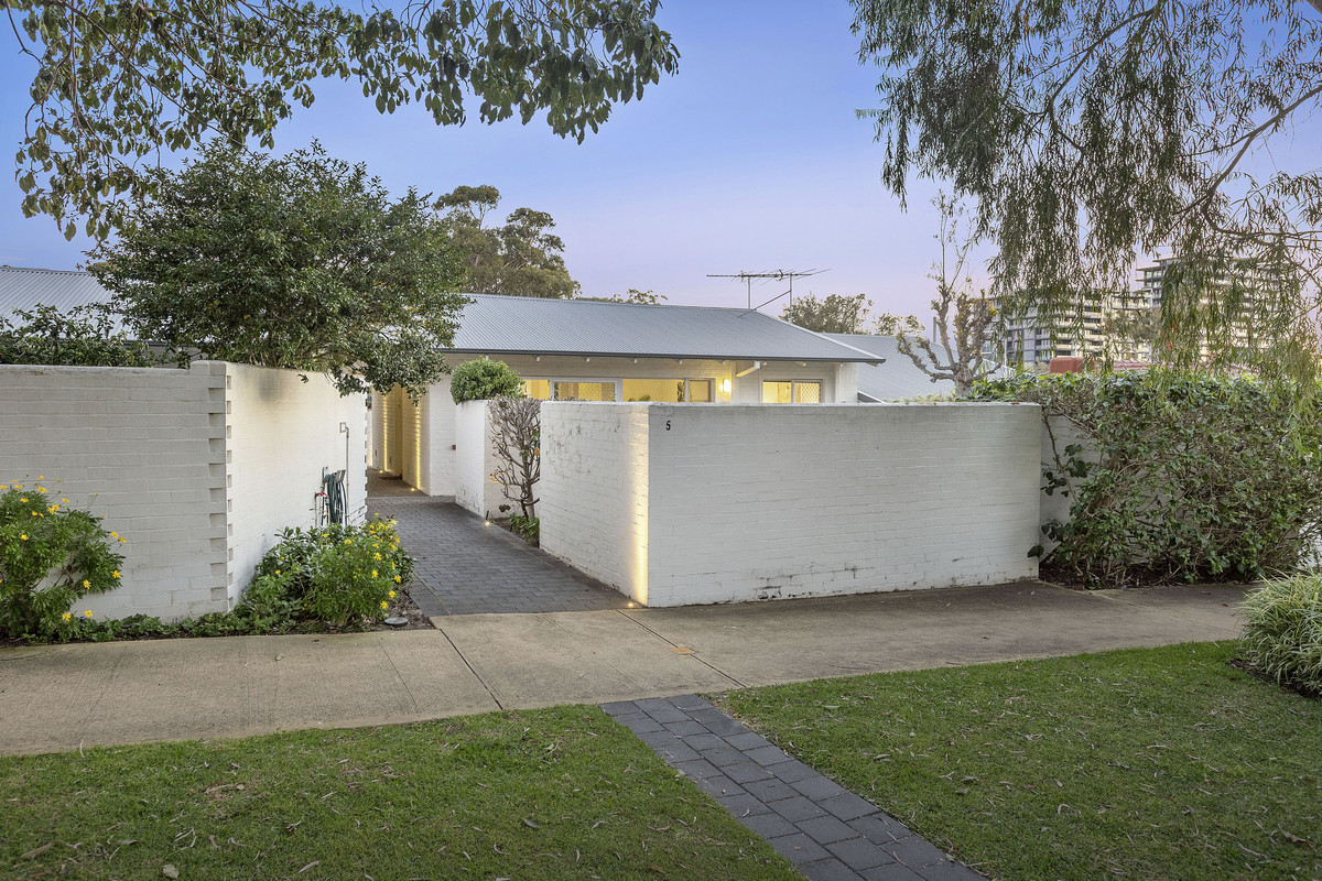 Privately positioned within the beautifully maintained “Serena” complex, this single-level, street-front villa offers low-maintenance living in one of Perth’s most prestigious enclaves on the border of Claremont and Peppermint Grove. Light and bright throughout, the home features two bedrooms with built in wardrobes, a stylishly renovated bathroom with a shower and separate bath, a neat and functional kitchen, split system air conditioning, ceiling fans, garden shed and a warm, uplifting ambience enhanced by fresh paint and brand-new carpet. The north-facing courtyard is a true standout – expansive and sun-drenched, it’s the ideal setting for morning coffee or entertaining guests. Set within a tightly held strata group of only 16, the villa also includes one car bay and benefits from upgrades to the complex including new paving, re-roofing and gutter replacement. Upcoming works already budgeted for from existing reserve funds include external painting, a new switchboard for the common areas and new external shutters. Whether you’re starting out, scaling down, or seeking a prime investment, this is a move-in-ready opportunity in a blue-chip riverside locale.