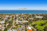With a large landholding in prime south City Beach, this stylish, light-filled home blends modern family living with relaxed coastal charm. Beachy whites and floor to ceiling glass define spacious, free-flowing living, dining and entertaining areas and a bright, central kitchen. Front and rear glass sliders draw in the scenery and connect the indoors with magnificent outdoor areas which include a superb, timber decked alfresco and a sparkling, heated swimming pool. A large, grassed play area, elevated garden terrace and secluded cubby house offering endless spaces for children to play, grow, and explore. With its coastal-inspired interiors, abundant light, and seamless indoor-outdoor flow, this property is perfectly crafted to see your family through its wonder years together in style.