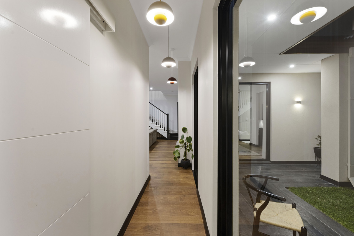 Sophisticated and stylish with soaring ceilings, architectural lighting, bespoke cabinetry and quality window treatments, this refined residence is open and yet private, with a real sense of seclusion and space. Centred around a designer kitchen with European appliances, a butler's pantry and a four-metre breakfast bar in open plan with a spacious living, dining and entertaining area, the residence is immediately captivating and totally unique. Overlooking elegant north facing gardens, a versatile second living area on the ground floor is currently a playroom but would work equally as a media room or home office. The main bedroom suite is amongst the finest we have seen. Vast in scale and with an integrated parents’ retreat, resort like ensuite and fully fitted dressing room, it enjoys excellent separation on the first floor. Three additional well-proportioned bedrooms on this level share another beautiful bathroom and a leafy garden aspect. Meticulously presented and featuring electric entry gates, a solar electric system, electric heat pump hot water system, Ezone touch screen controlled ducted air conditioning, a large secure storeroom, reticulated gardens and a private alfresco terrace, this is a remarkably stylish property with a level of quality several steps above the norm. It's all about living well and living in style. Unlocking your time to focus on the things you love to do in a place you will love to live.