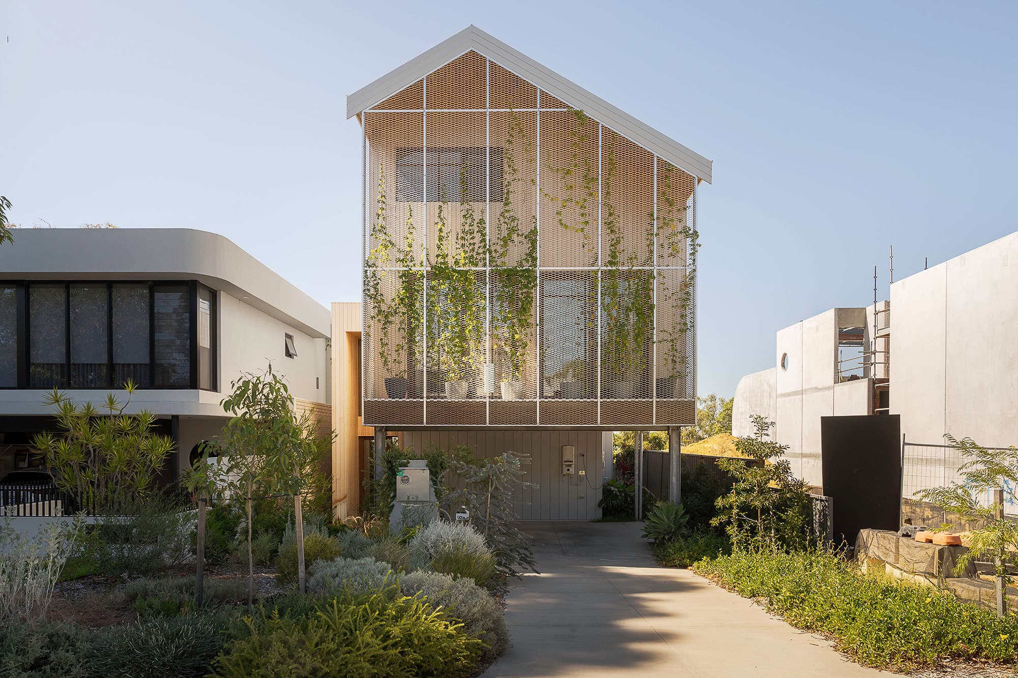 And then there are the layers you don’t immediately notice. A carefully considered ground floor footprint maximises outdoor space and greenery, strengthening the home’s connection to nature. External screening supports climbing plants, including deciduous hops that provide seasonal shade while softening the façade.