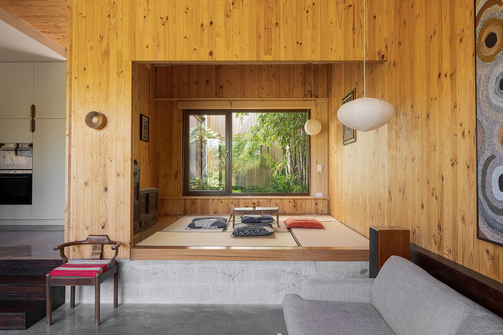 Flowing from the main living area, a tatami tea room (or washitsu, if we’re getting technical) introduces a rare level of flexibility we don’t often see. Designed as a multi-purpose space, it can shift effortlessly between retreat, hosting or quiet reflection, a truly unique feature that adapts to how you choose to live.